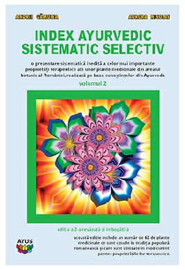 o prezentare sistematică inedită, realizată pe baza cunoştinţelor milenare din cadrul sistemului Ayurveda, a unor proprietăţi terapeutice remarcabile ale unor plante medicinale utilizate în mod curent în România